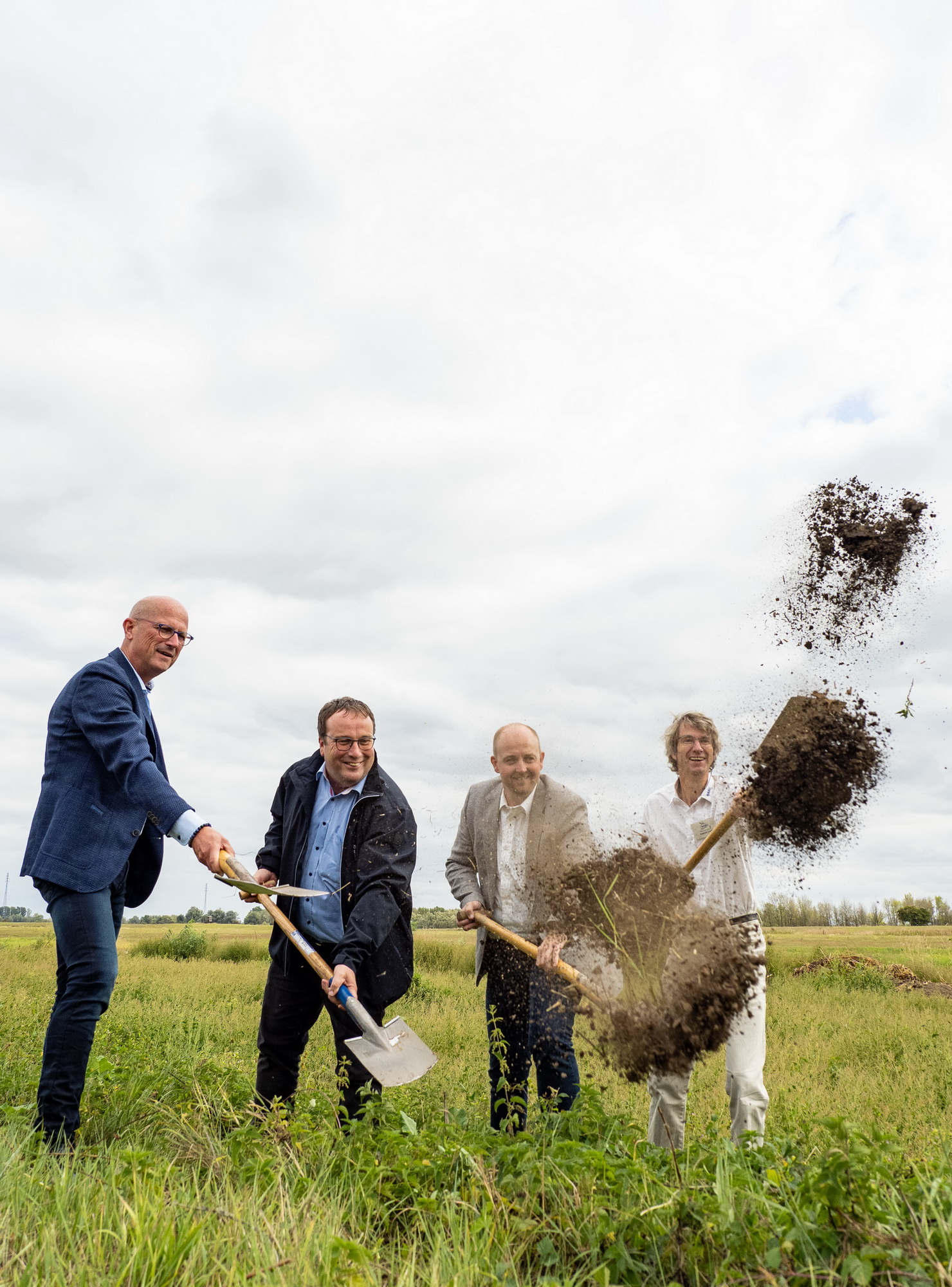 Perfect weather and good mood on Saturday 27.08.22 in the Emmerich Ward at the kick-off party for the construction work. State Minister for Environment of Northrhine Westfalia Oliver Krischer, 1st Deputy District Representative Stefan Welberts and the Mayor of Emmerich Peter Hinze together with our CEO Dietrich Cerff shovel hard at the groundbreaking ceremony of the project.
