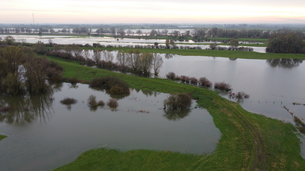 The water levels in the floodplain are pleasingly high at the moment. Rare wetland habitats can thus recover from the droughts of recent summers and are hopefully better equipped to withstand future dry periods. Nature conservation measures that we are implementing as part of this LIFE project are helping to keep this valuable water in the wet meadows for longer and thus preserve rare animal and plant species. However, the construction site for the current measures has been paused for the time being due to the flooding.