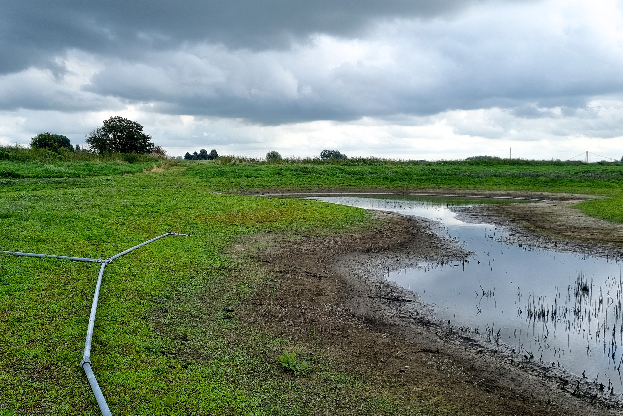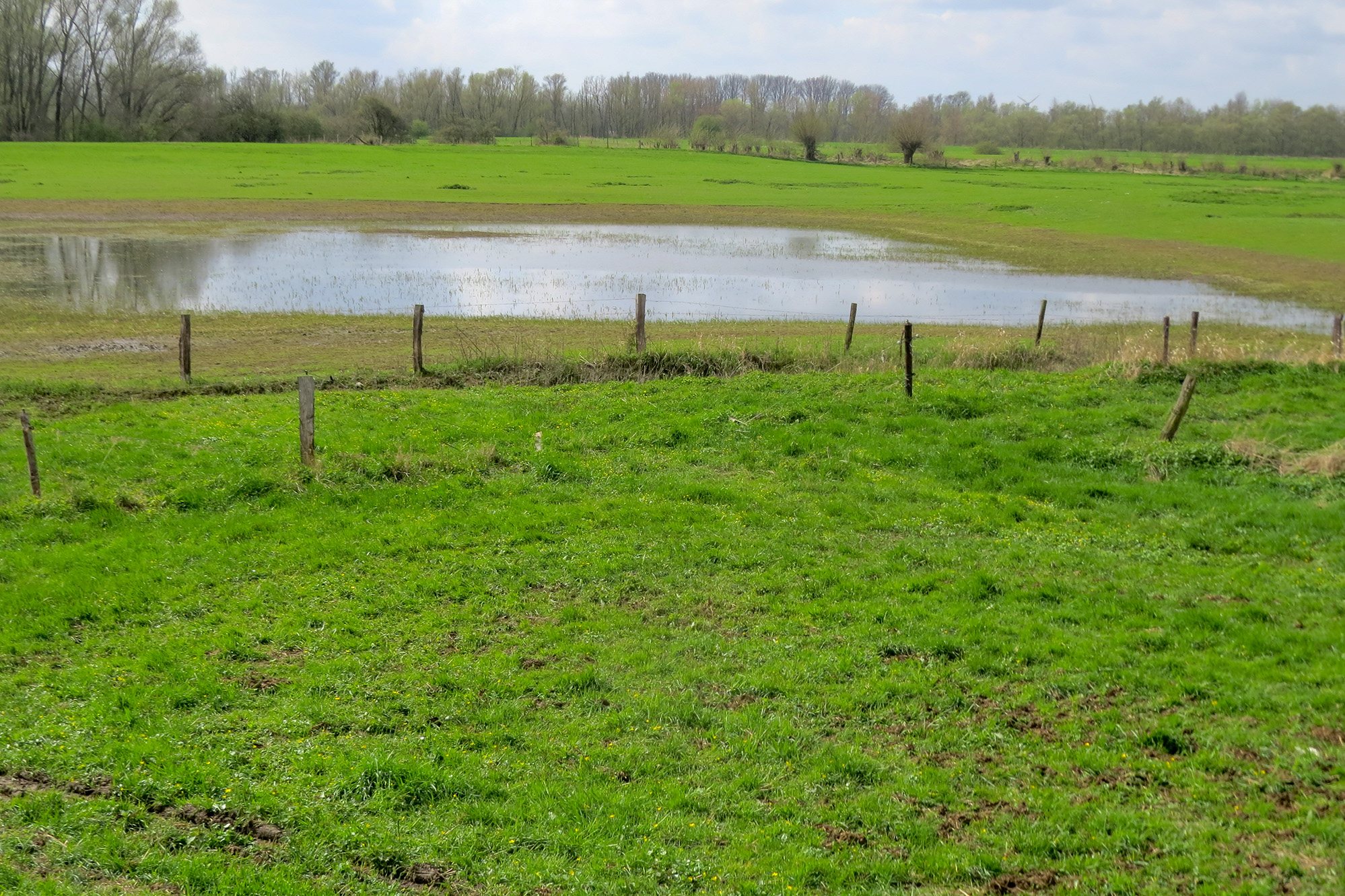 Dieses Frühjahr wird zum ersten Mal seit Einrichtung die aktive Bewässerung benötigt, denn in den Flutmulden ist bereits ungewöhnlich früh kaum noch Wasser vorhanden. Dank des Einsatzes unserer Freiwilligen sind die Pumpen nun eingeschaltet und können die Feuchtwiesen des Auengebiets mit Wasser versorgen. Seit letztem Jahr steht in der Emmericher Ward die neue Bewässerung aus solarbetriebenen Pumpen zur Verfügung. Über oberirdisch verlegte Rohre kann hochgepumptes Wasser in den Flutmulden des Gebiets verteilt werden. Hierbei handelt es sich um einen geschlossenen Kreislauf: Das Wasser wird aus dem Boden hochgepumpt und versickert wieder in diesem.