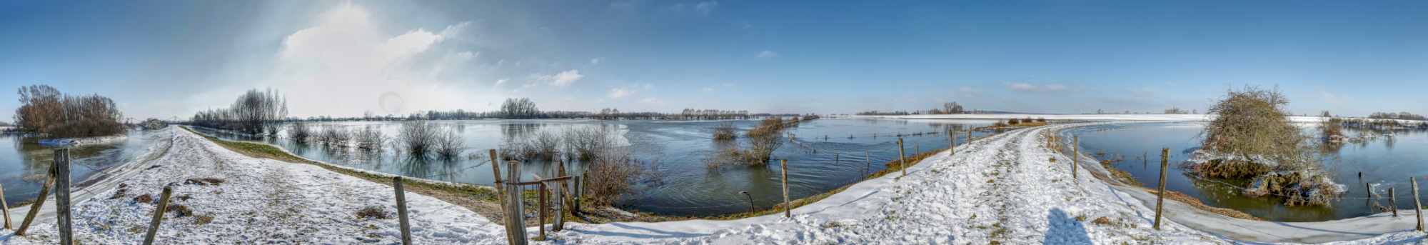 „Richtiger“ Winter am Niederrhein! Auch in der Emmericher Ward liegen bis zu 50 cm Schnee! Teile der überschwemmten Emmericher Ward sind gefroren und die Gänse haben sich andere Rastplätze gesucht. Nachdem das Wasser etwas zurückgegangen ist, kann genau gesehen werden, wie hoch es stand. Die grünen Flächen lagen während des Schneefalls unter Wasser und kommen nun wieder zum Vorschein.