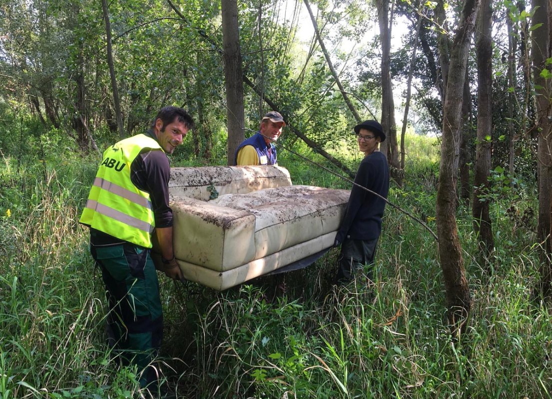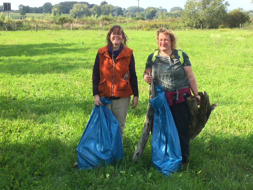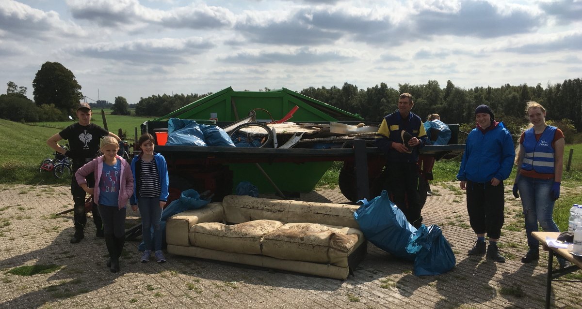 Bei schönstem Spätsommerwetter sammelten etwa 30 kleine und große Naturbegeisterte im westlichen Teil des Naturschutzgebiets Emmericher Ward den am Rhein angeschwemmten Müll. Von Ohrenstäbchen und Flaschen über Autoräder bis hin zu einem großen Ledersofa war praktisch alles dabei. Ein ortsansässiger Landwirt unterstütze mit Traktor und Anhänger die Sammlung. Insgesamt kamen ungefähr 5 Kubikmeter Müll zusammen.