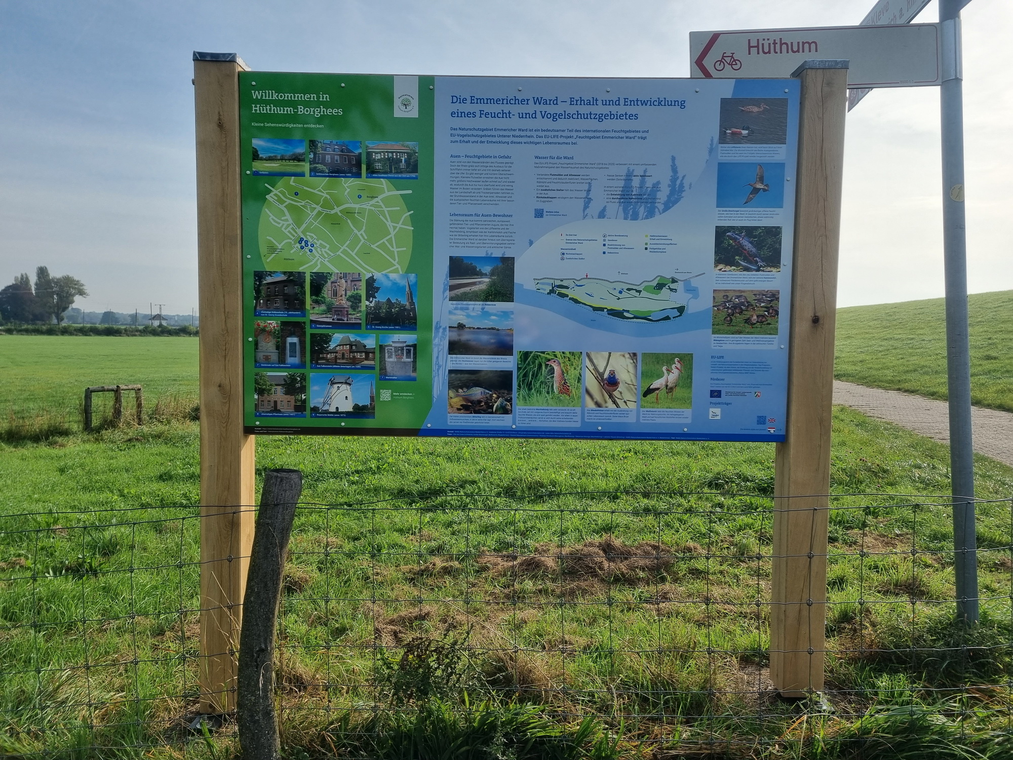 The construction work in the Emmericher Ward is still in full swing and is expected to be completed by the end of autumn this year. Good news for all those who enjoy walking or cycling along the Banndeich in the Emmericher Ward: Three new information signs have been put up recently and provide information about the flora and fauna of the wetland and bird sanctuary, its conservation and development, and flood protection.